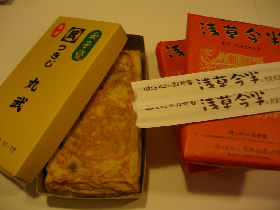 丸竹の卵焼きと今半の牛肉弁当です。